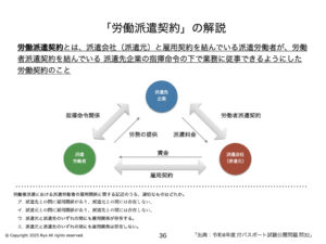 なるほど。派遣労働者は、派遣元事業主と雇用関係がありながら、派遣先事業主の指示で働くということですね。