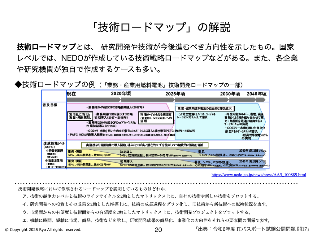 「技術ロードマップ」の解説 〜 ITパスポート R6年 問17 〜