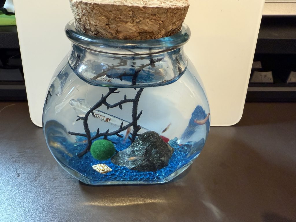 ゆらゆらと揺れる彼らの動き、水の音、そして光の反射。ボトルの中の小さな宇宙は、私にとって、心を静かに落ち着かせる「瞑想の空間」となりました。ただそこにいるだけで、心が安らぎ、深く癒やされていくのを感じます。