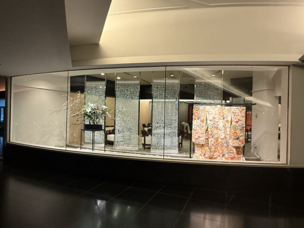 一つは、やはりその「泊まる美術館」というコンセプトです。ホテル全体が、一つの美術館として機能しているというのは、他にはない唯一無二の魅力です。ロビーから客室、レストランに至るまで、至る所に日本画や美術工芸品が配され、まるでアート作品に囲まれた空間に宿泊できるというのは、美術好きにはたまらない体験です。特に、9月という残暑が和らぎ始める時期に、心身ともに静かに癒やされたいという思いがありました。