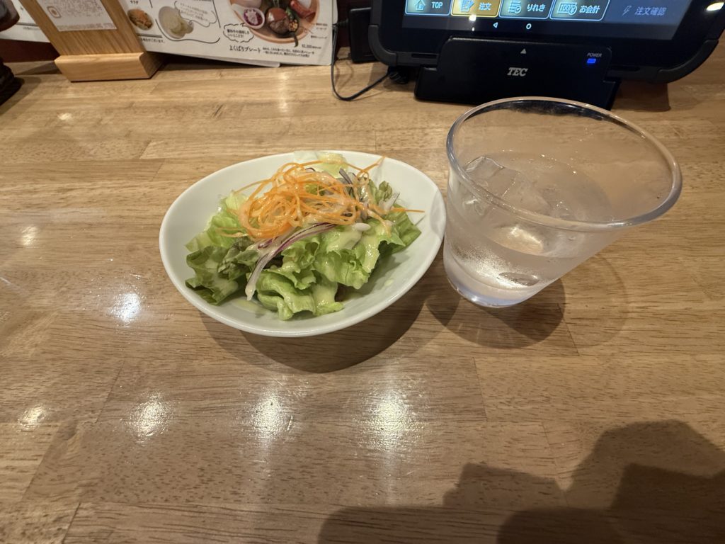 スープも出汁が効いていてホッとします。シャキシャキのサラダも口の中をリフレッシュさせてくれます。