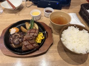 - 蓼科牛鉄板ミックスプレート(ハンバーグ✖️サーロインステーキ):ハンバーグと蓼科牛のステーキどちらも贅沢に楽しめます。